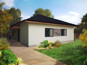 Naše společnost se zabývá komplexním zajištěním individuální výstavby RD, a to jak podle typových, tak i individuálních projektů, včetně zajištění vhodného pozemku pro stavbu. Služby jsou od výběru pozemku a domu, přes zajištění financování, předprojektovou a projektovou přípravu a zajištění výstavby, až po kolaudaci a následný zápis do Katastru nemovitostí. Naše služby je vždy možné využít buď komplexně, nebo pouze některé jejich části, s výjimkou samostatné koupě pozemku. Všechny pozemky jsou prověřené a lze je najít i samostatně v inzercích realitních kanceláří, případně přímých vlastníků. Domy vycházejí z typových projektů a lze je na přání klienta upravovat, případně i vypracovat zcela nový, individuální projekt na základě požadavků zájemce o výstavbu. Z našeho portfolia pro Vás vybíráme: Ideální poměr mezi cenou a kvalitou. To je přízemní bungalov EMPIRE 1, který podléhá nízkoenergetickým standardům. Vliv na to mají sendvičové panely připravené hned ve výrobě doslova na míru. Tento fakt se promítá i do rychlosti výstavby. Tato unikátní dřevostavba může být zhotovena také v klasické cihlové variantě Porotherm nebo Ytong. Ve všech případech je dosaženo nízkých energetických nároků, což ocení nejedna moderně smýšlející domácnost. Bungalov EMPIRE 1 je navržen tak, aby svým konceptem dokonale uspokojil čtyřčlennou až pětičlennou rodinu. O to se starají vhodně rozvržené vnitřní prostory. Dominantní je pochopitelně obývací pokoj ve spojení s kuchyní. K dispozici jsou následně tři samostatné pokoje. Nechybí ani technická místnost, toaleta a koupelna. Tohle všechno je základem spokojeného žití. Projekt EMPIRE 1 je navržen tak, aby byl co možná nejvíce variabilní. To znamená, že na přání zákazníka mohou být provedeny nejrůznější změny, od vnitřního uspořádání, přes typ střechy, barvy fasády, až po ty nejmenší detaily, jakými jsou například rekuperace tepla. Tento prostorný bungalov je zkrátka ekonomickým ideálem. Tato nabídka je pouze inspirativní. Může být realizována v této podobě, nebo je možné naše domy a pozemky vzájemně kombinovat v mnoha různých variantách. Bližší informace získáte na uvedených kontaktech.
