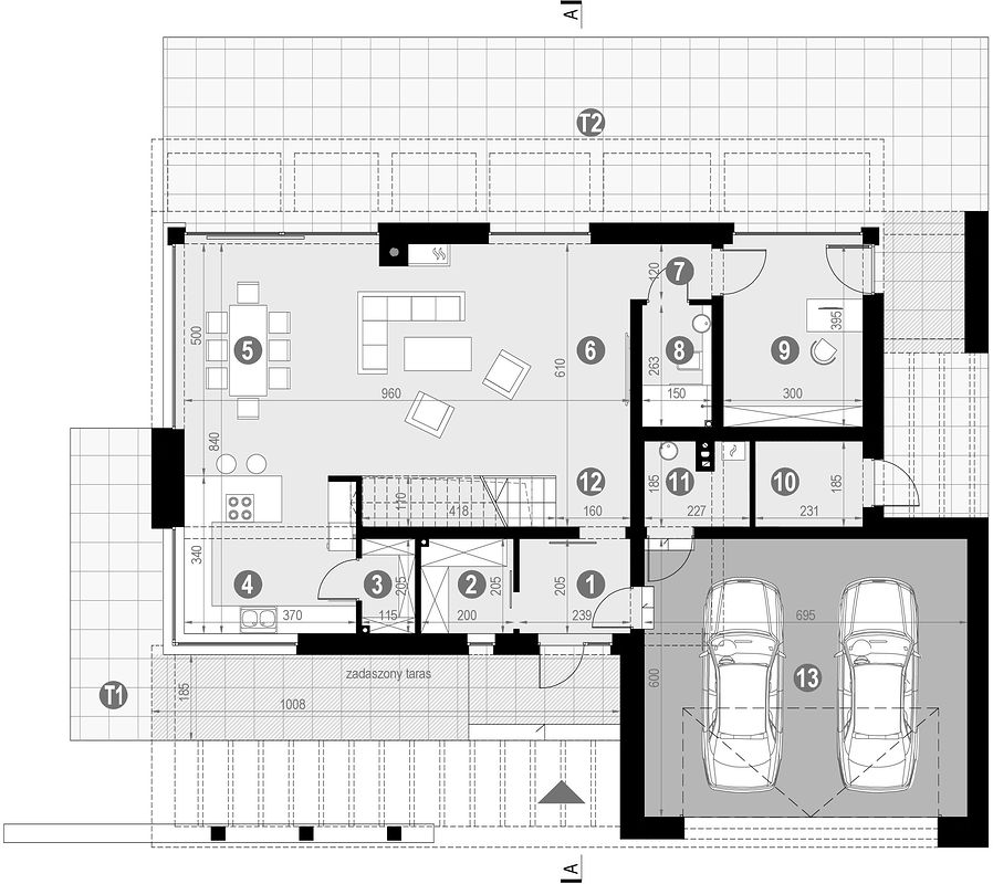 Moderní velkoprostorový komfortní rodinný dům Gerlach o dispozici 5kk a užitnou plochou 228m2 s integrovanou dvojgaráží. Design domu je zajímavým konceptem pro středně široké pozemky. Dům má jednoduchý tvar, díky němuž je mnohem snazší uspořádat interiér. Projekt má hřeben umístěný rovnoběžně se silnicí, což je důležité vzhledem k požadavkům specifikovaným v podmínkách rozvoje. Konstrukce zahrnuje garáž pro dvě auta přesunutou dopředu. Tělo budovy je zakončeno obvodovou střechou, která je vysoce odolná vůči nepříznivým povětrnostním podmínkám. Gerlach je dvoupatrový dům, což znamená, že jeho plocha je jasně rozdělena do zón: denní a noční. Za pozornost stojí prostorný obývací prostor. Skládá se mimo jiné z funkční kuchyně, která splní sen každé hospodyňky. Příznivce praktických řešení bezpochyby potěší, že je zde i místo pro spíž. Jídelna zahrnutá v návrhu je dokonalým řešením pro lidi, kteří rádi přijímají hosty a organizují rodinné, intimní večírky. Zajímavým prvkem je určitě krb umístěný v obývacím pokoji, který dodá interiéru jedinečnou atmosféru. Projekt zahrnuje jednu komfortní koupelnu v přízemí a dvě další koupelny v prvním patře. Čtyři prostorné ložnice obsažené v domě jsou optimální volbou pro rodinu 4-6 osob. Prostor lze také použít jako pokoj pro hosty nebo kancelář. Sdílené grilování a rodinné posezení zpříjemní terasa zahrnutá v projektu. Projekt byl proveden na zděnou technologii, díky níž dům udržuje v horkém počasí příjemný chlad. Jeho vnější vzhled zdůrazňuje rysy charakteristické pro moderní styl, který je ideálním řešením pro lidi, kteří oceňují inovativní řešení. Prémiový standard vybavení. Do projektu je možné zapracovat klientské změny. Samozřejmostí změn v projektu je možnost zrcadlového provedení. Připravíme profesionálně zpracované podklady pro stavební řízení a zajistíme provádění technického dozoru investora a komunikací se stavebním úřadem. Pro pohodlné užívání domu Vám navrhneme optimální způsob vytápění a větrání pro využití dotačních titulů. Dále návrh interiéru včetně úpravy exteriéru a mnoho dalších doprovodných služeb pro snadné jednání s bankou v rámci sjednání hypotéčního úvěru a jeho následného čerpání.